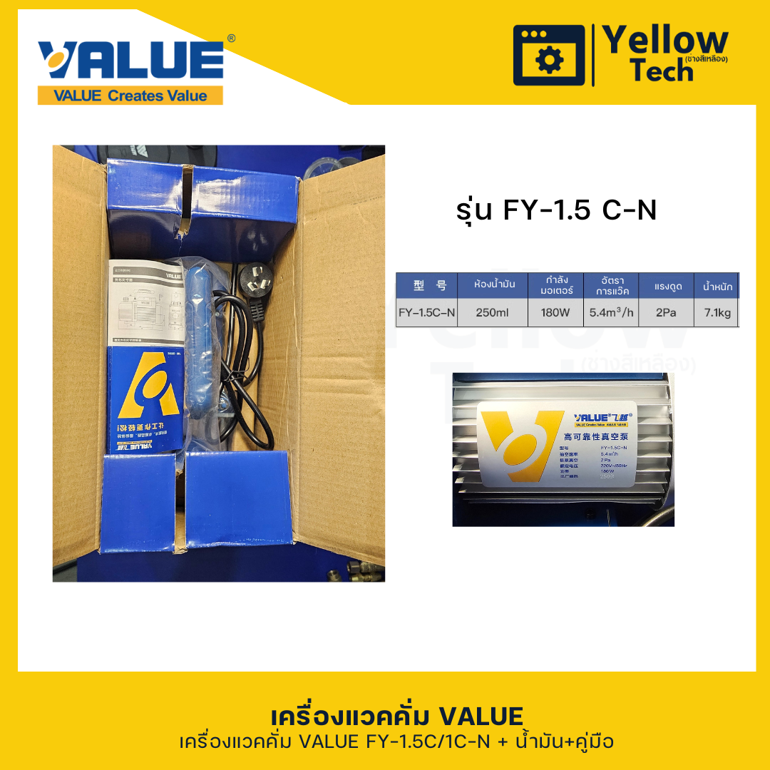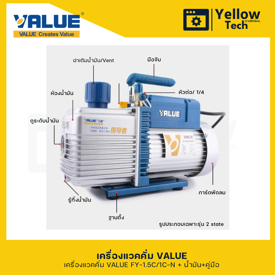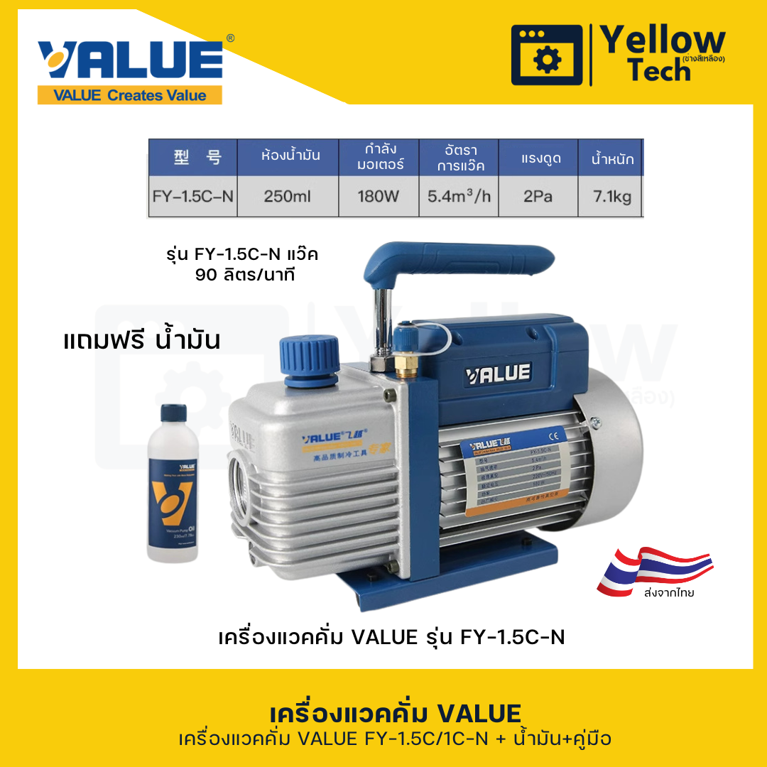 เครื่องแวคคั่มVALUE FY-1.5C-N: ปั๊มสูญญากาศแอร์ประสิทธิภาพสูง สำหรับช่างแอร์มืออาชีพ